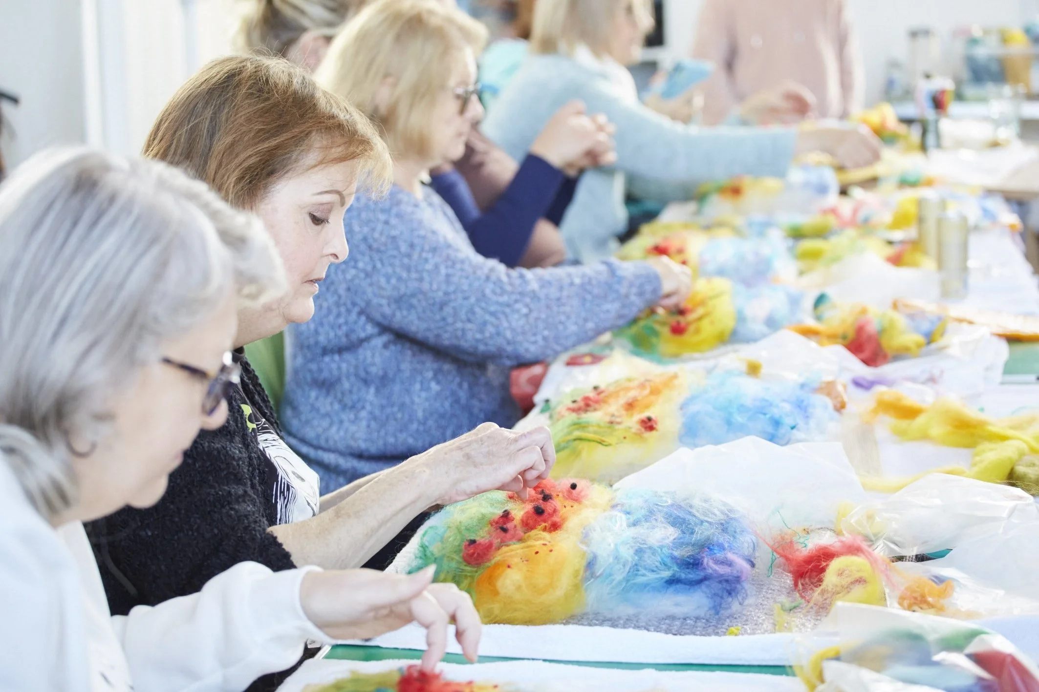 Making course with Messums Studio's Lynne Heaton teaching the process of wet felting. Participants had the chance to create a landscape scene to understand the process followed by the chance to create their own design.